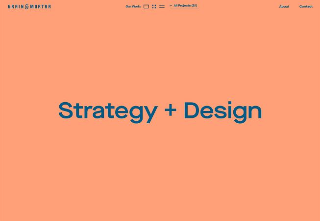 открывается большим заголовком, который содержит их визуальное заявление и ничего больше. При прокрутке вы получаете доступ к проектам и глубже погружаетесь в информацию о бренде.