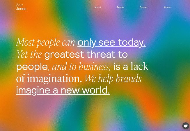 Zeus Jones использует различные способы обработки текста на главной странице, однако, подчеркивание наиболее заметно, вероятно, потому, что оно наиболее непривычно в контексте дизайна веб-сайта.