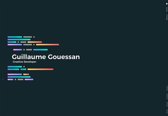 Guillaume Gouessan использует градиенты в иконках изображений во многом так же, как и в предыдущих примерах, но с немного большей вариацией цвета. Здесь вы можете увидеть, как выглядит градиент при использовании изменения цвета, которое не является слишком резким, но более эффекиным, чем монотонный вариант. Вы можете увидеть использование более монотонного градиента на его сайте после прокрутки в большом десктопном изображении.
