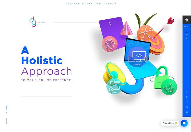 использует трехмерные стильные углы, чтобы привлечь внимание пользователей. Они используют простую анимацию, которая «плавает» по главной странице и следует за прокруткой с другими геометрическими элементами.