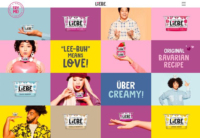 Полноэкранная сетка Liebe Quark содержит красочные сочетания изображений и текста, но на самом деле здесь нет интерактивных элементов.