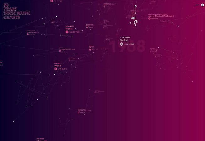 В используется градиент текста с противоположным эффектом. Вместо градиентной заливки для надписей дизайн включает анимацию выделения градиента для привлечения пользователей. Это просто и визуально интересно. Остальная часть дизайна довольно проста и привязана к текстовым элементам без движения или цвета, так что существует четкая координационная точка. Он также включает цвет года для двух трендов в одном дизайне.