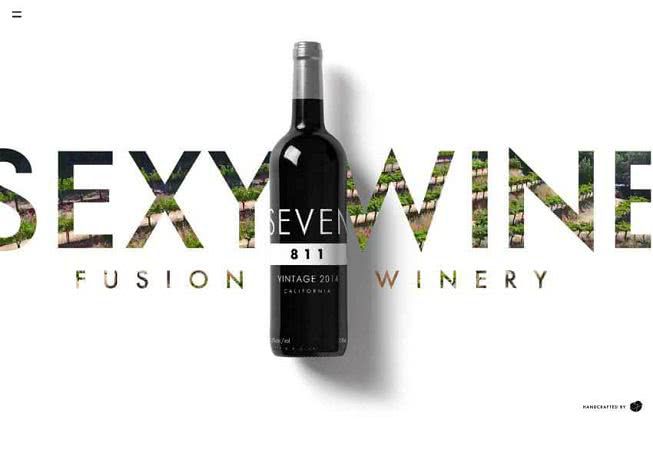 Fusion Winery использует фоновое видео виноградника в надписи. Что хорошего в этом проекте, так это трехслойный эффект: фоновый видеоролик под белой текстовой вырезкой, находящейся под изображением продукта.