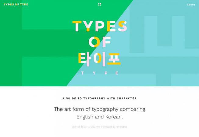 - Если текстовый блок является коротким, как у Types of Type, рассмотрите какой-нибудь яркий и броский шрифт, чтобы привлечь пользователей.