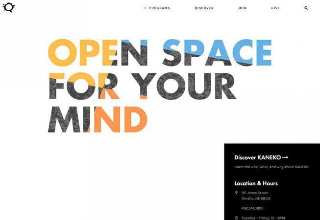 Kaneko использует неидентифицируемое изображение как заполнение букв. Если вы выберете этот стиль, сохраните этот фон простым, как это сделано в этом дизайне. Есть только цвета и текстуры, которые привлекают внимание к тексту на холсте.