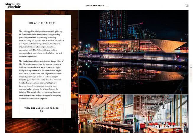 Macaulay Sinclair имея больше текста, чем другие примеры, использует одну часть сетки изображения для расположения текстового элемента. Здесь изображение позади белого ящика не содержит информации. Он имеет цветовую схему, которая похожа на другие изображения, и в основном служит для создания сплоченности между текстовым элементом и остальной частью дизайна.