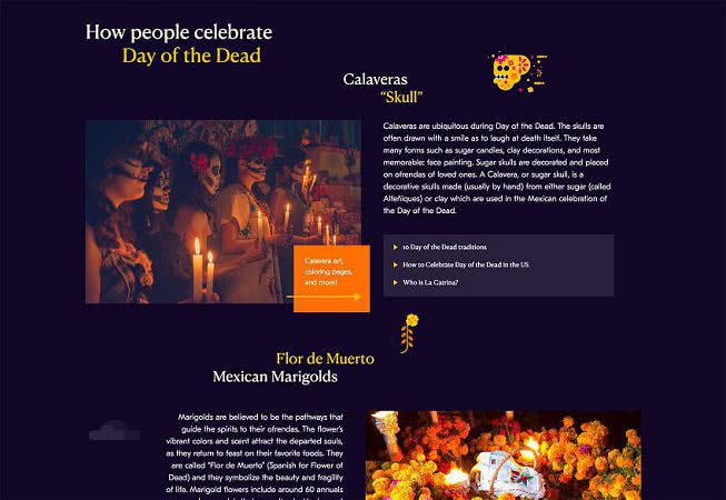 использует мини-карты по всему дизайну, чтобы привлечь внимание (обратите внимание на стрелку на оранжевой карте на ссылки справа от нее) и предоставить дополнительную информацию. Каждая крошечная карта включает в себя анимацию наведения, которая дополнительно поощряет клики.