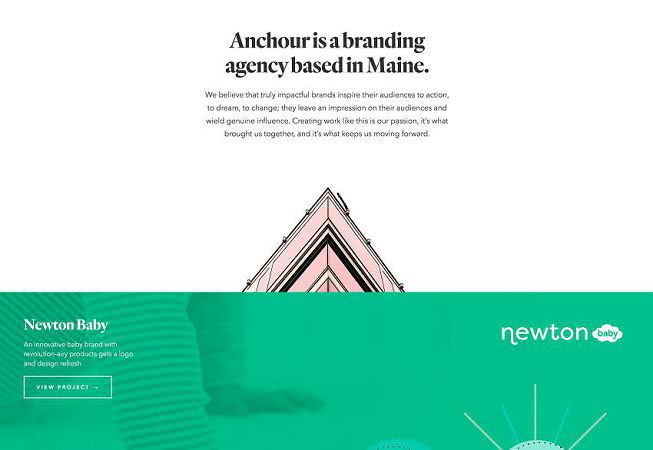 Эта тенденция воплощает идею крупных заголовков, которые занимают почти половину первого экрана, и за которыми следуют другие элементы с большим количеством цветов, изображения или видео.