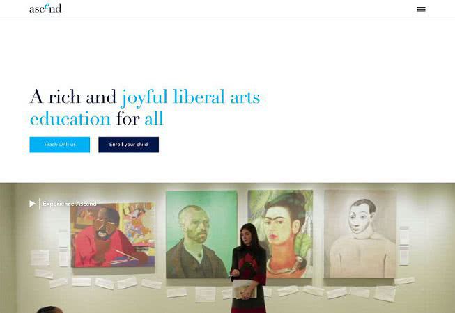 использует половину экрана пустого пространства, чтобы рассказать вам, чем они занимаются с двумя призывами к действию (в зависимости от того, к какой части аудитории вы относитесь). Ниже приведен полноэкранный видеоролик, который показывает школу в действии. Это интересный способ рассказать историю, не перегружая пользователей слишком большим количеством информации сразу.