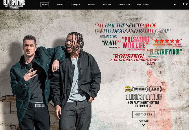использует панели для выделения различной информации о предстоящем фильме. Существует сочетание полноэкранных панелей и небольших стеков, а также контента, в котором представлены неподвижные изображения и видео.