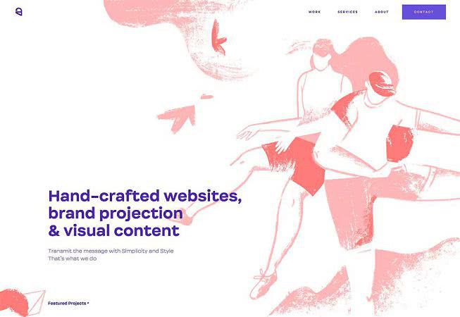 Сайт также имеет иллюстрацию с анимированными элементами, но она находится прямо на главной странице. Иллюстрация имеет чистые линии и простую расцветку, но есть так много, на что посмотреть. Каждая маленькая сцена является частью общей картины, привлекающей внимание. Постарайтесь не смотреть, как фиолетовые шарики падают и перемещаются по всему рисунку.