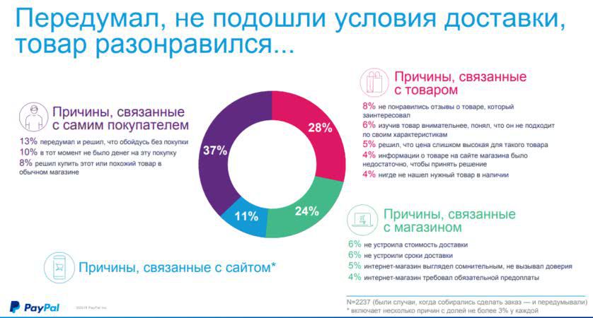 В исследовании PayPal и Data Insight названы частые причины, по которым пользователи бросают корзины: обычно они связаны с самим покупателем, но часто проблема в сайте или товаре.