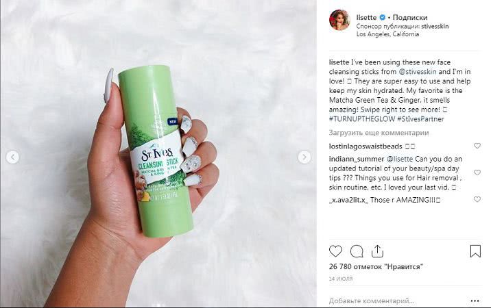 Реклама Stivesskin в инстаграм-профиле блогера @lisette