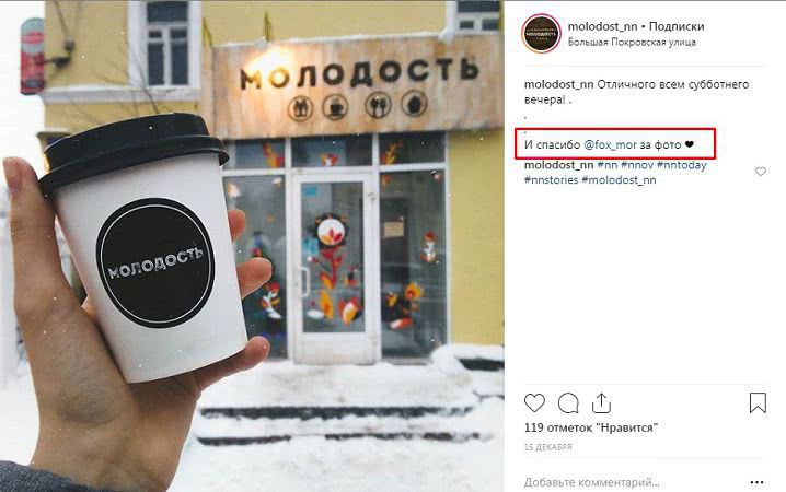 Многие компании собирают фотографии с отзывами по хэштегам и размещают в своем аккаунте, указывая автора. Это может быть приятно автору фотографии и покажет пользователям, как другие относятся к бренду.