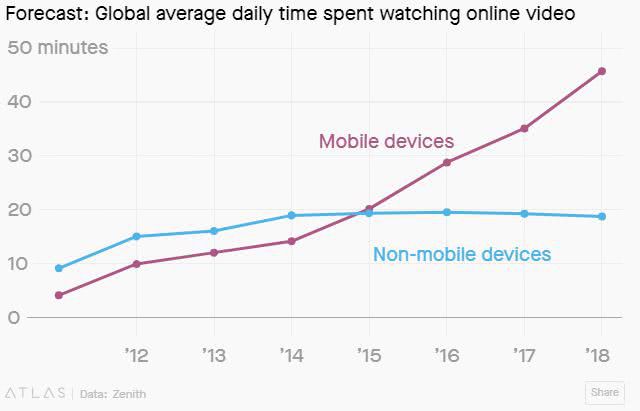 Все больше людей предпочитают смотреть контент, а не читать его. По данным Zenith, среднестатистический человек тратит около 45 минут каждый день на просмотр мобильного видео.