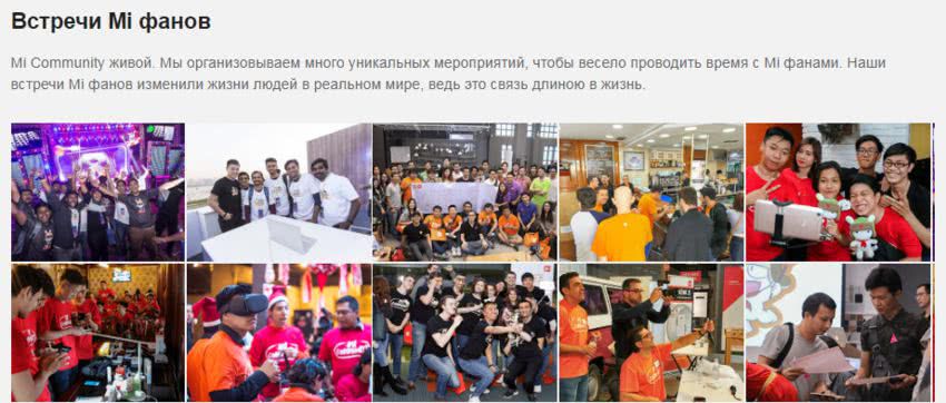 Компания «Xiaomi» развивает свое сообщество любителей бренда — « Mi Community». Пользователи общаются на форумах, смотрят видео обзорщиков новинок, получает новости первыми и встречается на офлайн мероприятиях.