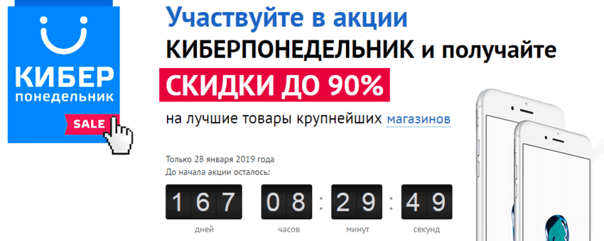 Этим принципом вызван ажиотаж «Киберпонедельника» и «Черной пятницы» — периода больших скидок, к которым покупателей готовят заранее.