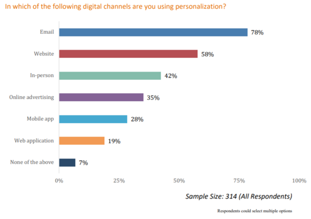 Согласно опросу Evergage, 93% маркетологов используют персонализацию хотя бы для одного канала в рамках стратегии продвижения.