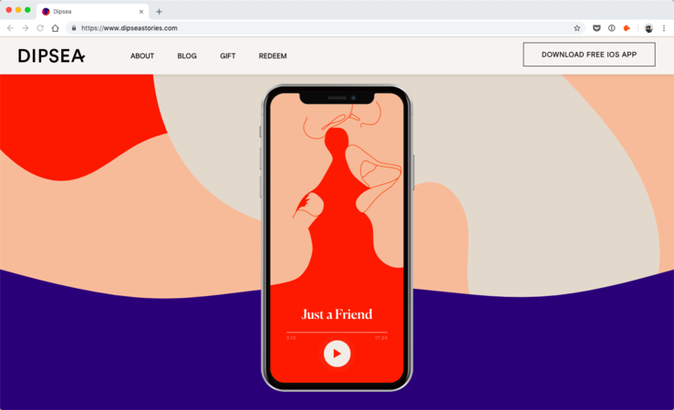 Домашняя страница Dipsea просто потрясающая. Это исключительно творческий подход, в том числе в исполнении потока страницы. Изогнутые края раздела в сочетании с красочными фоновыми формами — это фантастический дизайн, который делает прокрутку на главной странице интуитивно понятной.
