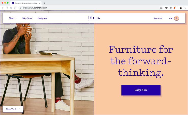 Общий брендинг Dims является уникальным и нетрадиционным. Неудивительно, что их использование цвета тоже не является чем-то обычным. Цвет играет большую роль в этом дизайне, особенно отсутствие традиционного белого фона и черного текста.