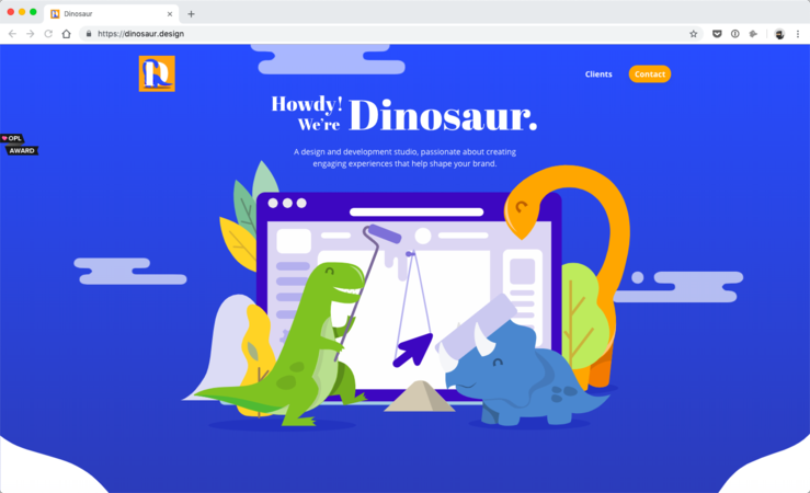Дизайн целевой страницы Dinosaur также использует неправильные формы в качестве фона. Это короткая страница, но поток между ее тремя разделами изумителен. Извилистые края фона направляют глаза посетителя вниз, обеспечивая плавную и интуитивно понятную прокрутку.