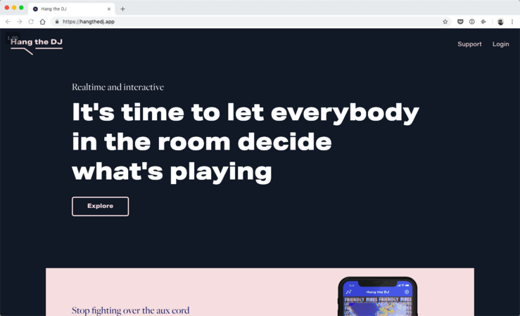 Hang the DJ использует темно-синий фон и пастельно-розовые цвета — это такая приятная цветовая схема. Синий подчеркивает визуальный дизайн, а розовый придает ему эксцентричную атмосферу. Два цвета отлично работают вместе!