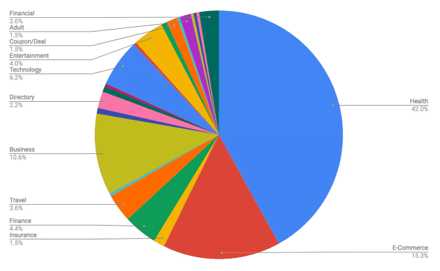 Пострадали 42% официальных ресурсов медучреждений, частных сайтов о здоровье и фитнесе, ЗОЖ. Причина такого смещения результатов неизвестна.