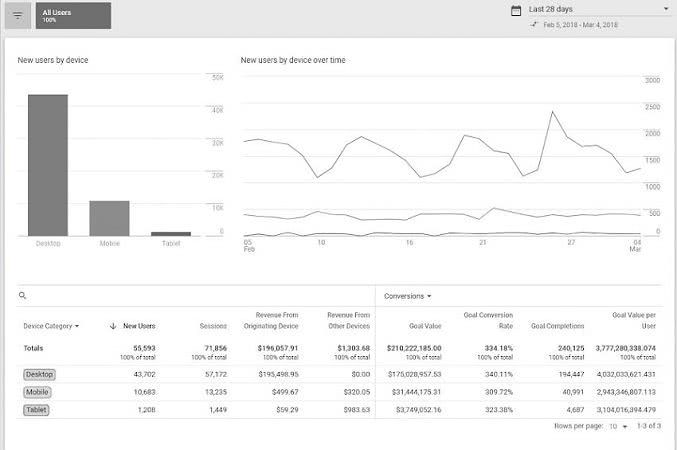По результатам можно определить, с какого устройства пользователям удобнее всего совершать целевые действия, на какие каналы вести рекламу, нужно ли дорабатывать мобильную или десктопную версию и где реклама будет успешнее.