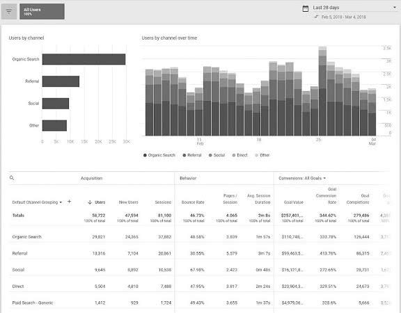 В отчете будет статистика о числе пользователей с разбивкой по каналам, откуда они пришли. Так вы сможете отследить значимые источники трафика. Если пользователь заходил с разных устройств, Google Signals засчитает их как относящихся к одному человеку, поэтому данные о количестве будут точнее.