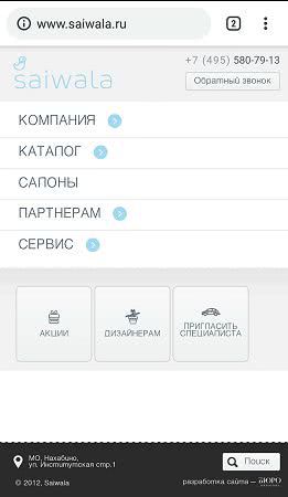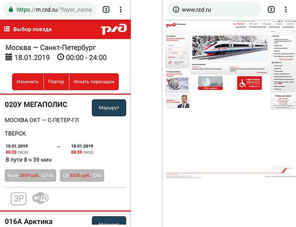 Интерфейс сайта подстраивается под разрешение экрана гаджета, для всех устройств один URL.