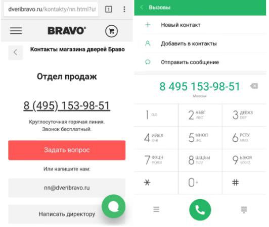 Рекомендуем сделать активным номер телефона, чтобы при нажатии на него пользователю оставалось только сделать вызов. Это настраивается с помощью кода: