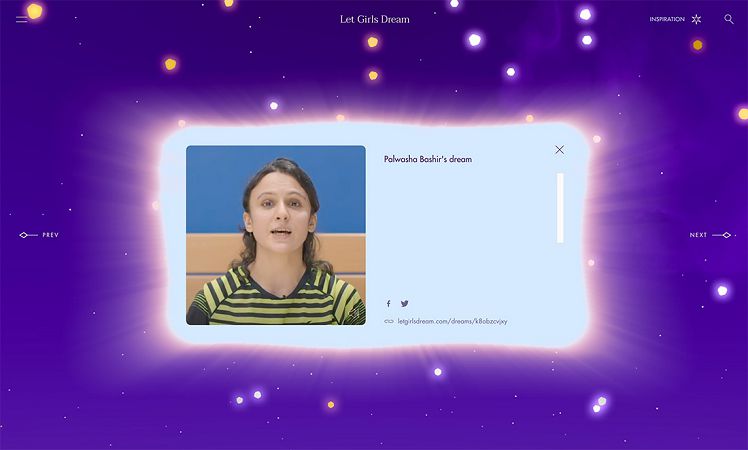 использует предоставленный пользователями контент, чтобы рассказать истории о расширении прав и возможностей. Дизайн наполнен интерактивными функциями, от текстовых и видео историй до мест, где можно загрузить свои мечты и информацию. Также есть анимационный трейлер, который согреет ваше сердце.