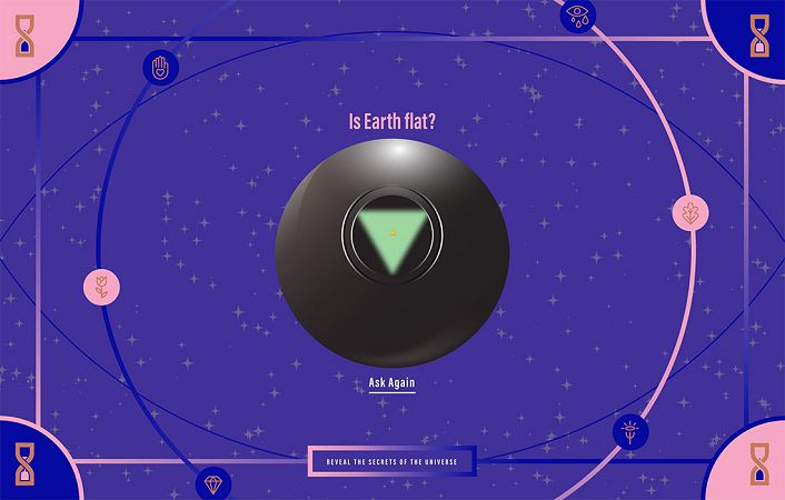 опирается на тренды чего-то старого (волшебный шар) и нового (AI), чтобы создать опыт, отличающийся от того, что вы ожидаете. Если вы хотите, чтобы пользователи проводили какое-то время на вашем сайте, дизайн должен быть креативным и обеспечивать достойный опыт.