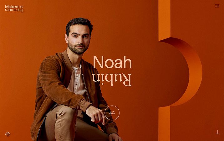 является одним из таких проектов. Начните с огромного гигантского W, который заполняет большую часть экрана, а затем перейдите к логотипу, использующему фанковый шрифт с перевернутой буквой. Значок прокрутки заключен в анимированное кольцо текста, и в нем используется несколько шрифтов и стилей.