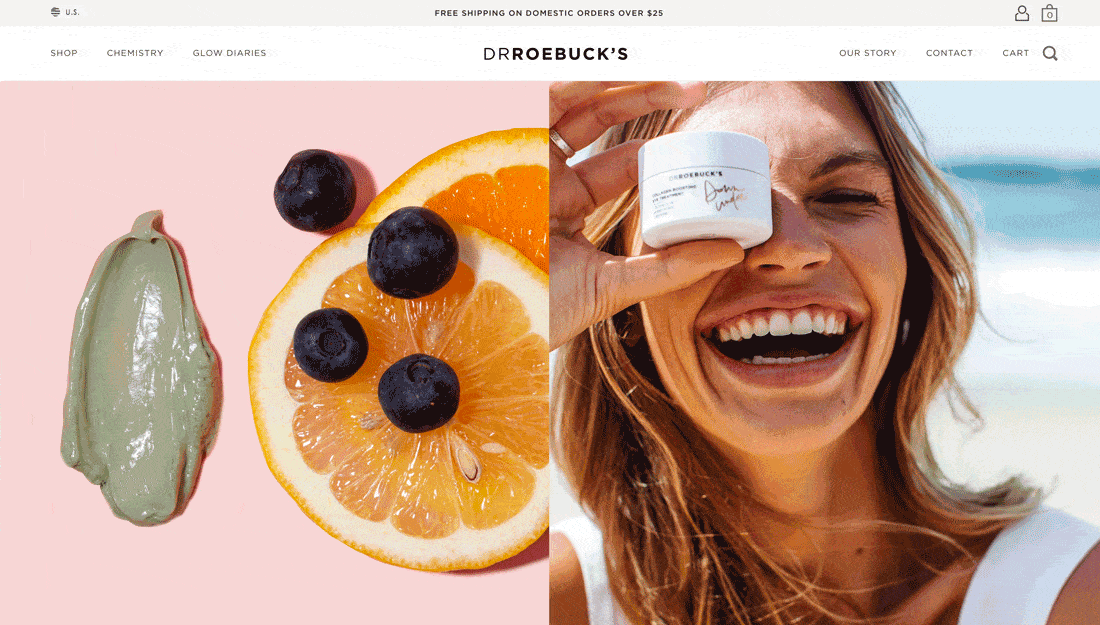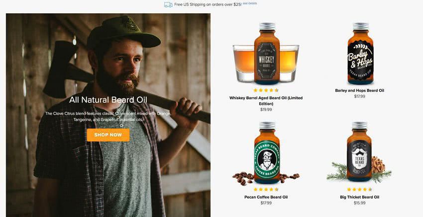 В приведенном выше примере показан разделенный экран с сильным изображением и сообщениями в паре со ссылками электронной коммерции. Он отлично смотрится на настольных компьютерах — с большим изображением, чтобы привлечь вас и аккуратно складывается на мобильном телефоне, что делает более приятным опыт покупок.