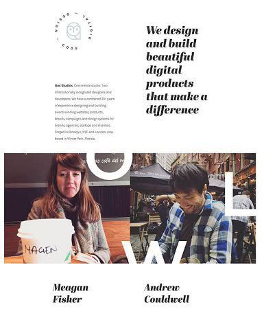 В минималистичном дизайне контуров разделенный экран может быть установлен с использованием сетки, но без цвета или изображения «экраны» будут выглядеть как один. Owl Studios, выше, справились с этим отлично. Над прокруткой сайт выглядит как одноэкранный дизайн, под ней и на мобильном телефоне разделение становится более очевидным.