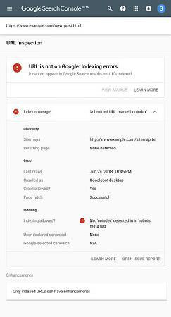Этот инструмент в обновленной Панели веб-мастера предназначен для проверки уже проиндексированных страниц сайта. Он поможет владельцу ресурса: отыскать ссылку в индексе Google и выяснить дату последней индексации;узнать канонический URL;проверить, имеется ли у страницы рабочая AMP-версия;обнаружить ошибки сканирования и индексирования URL-адреса. Чтобы начать проверку, достаточно ввести нужную ссылку в строку поиска в Google Search Console.