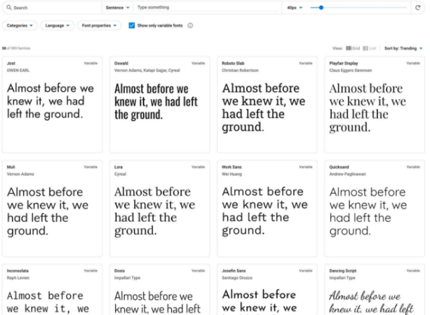 Google Fonts позволяет людям показывать только переменные шрифты в своих результатах поиска.