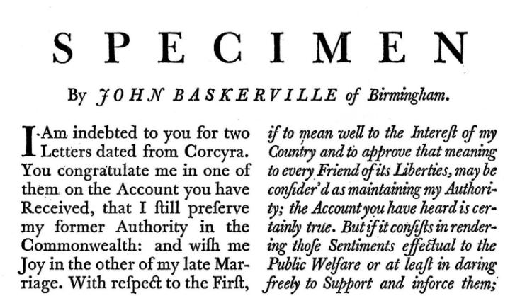 Джон Баскервиль сделал еще один шаг в 1757 году, создав с более четкими буквами. В то время как он улучшал шрифт, чернила и печатные машины, его шрифт был чернее, чем у его современников. Дизайн Баскервиля был раскритикован из-за толщины. Один из его критиков даже зашел так далеко, что сказал, что его шрифт будет «ответственным за ослепление нации». Его шрифт стал коммерческим провалом, но был возрожден в 20-м веке, и с тех пор он был провозглашен «».