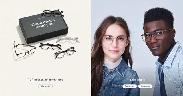 Раздельные конструкции были весьма практичны — две стороны могли быть сложены вертикально на меньших устройствах без потери ощущения дизайна. Обе стороны страницы также позволили вдвое увеличить количество призывов к действию. В приведенном выше примере Уорби Паркер разрешил пользователям выбирать викторину слева или покупать новые очки справа.