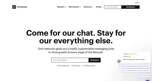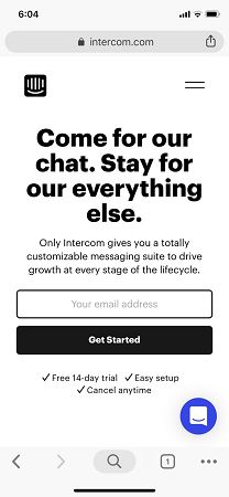 Посмотрите этот пример из Интеркома: основные элементы, такие как заголовок и форма регистрации, остаются неизменными как на компьютере, так и на мобильном устройстве, но навигация и логотип компании упрощены в мобильной версии, а интерфейс всплывающего чата скрыт.