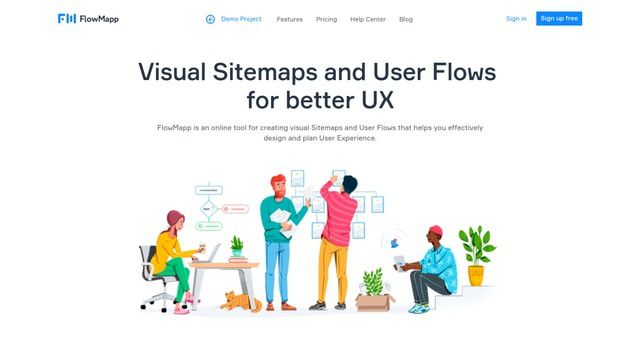 FlowMapp, например, использовал пользовательские иллюстрации, чтобы подчеркнуть преимущества своего инструмента онлайн-планирования.