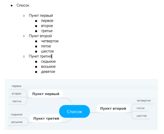 Нужно собрать список из пунктов с подпунктами, выделить его и запустить расширение. Оно автоматически соберет ветвистый список в ментальную карту в JPEG.