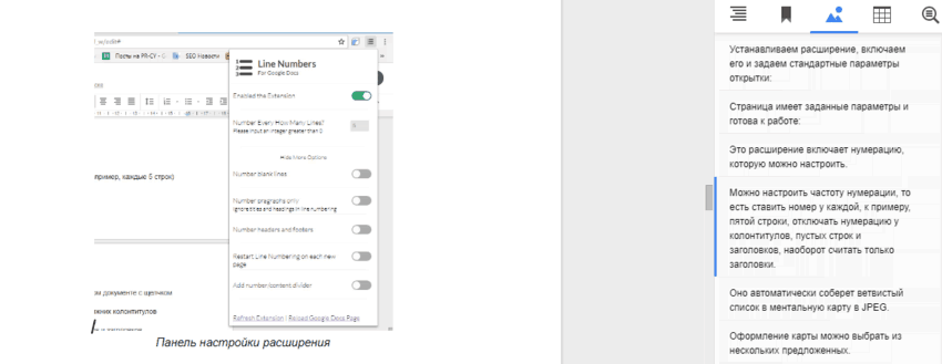 Работает как расширение Google Chrome, то есть находится на панели браузера, а не в Дополнениях Google Docs. Быстро включается и отключается по клику.