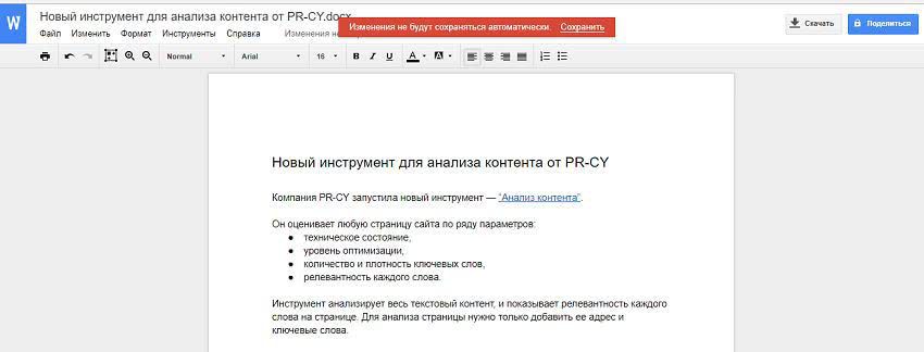 Ставим расширение, перетаскиваем файл в браузер. Он открылся в формате для редактирования. Похоже на урезанную версию Google Docs, как если бы он работал офлайн - без комментариев, автосохранения и совместных правок.