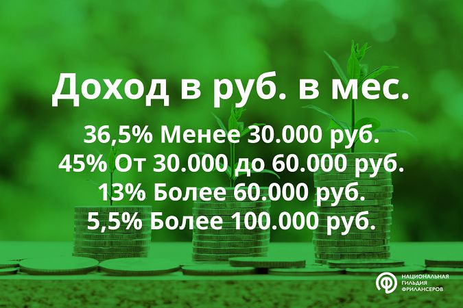 Более 18,5% фрилансеров в стране имеет рабочий доход, заметно превышающий средний заработок российского гражданина (44 тыс. рублей в 2019 году).