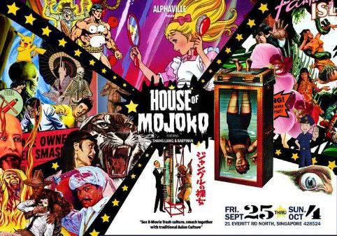 Плакат Стива Лоулера для выставки House of Mojoko — это парад поп-культуры и традиционной культуры. Он разделен на четыре секции, и каждая область состоит из изображений, представляющих «мусорную культуру фильма, разбитую вместе с традиционной азиатской культурой».