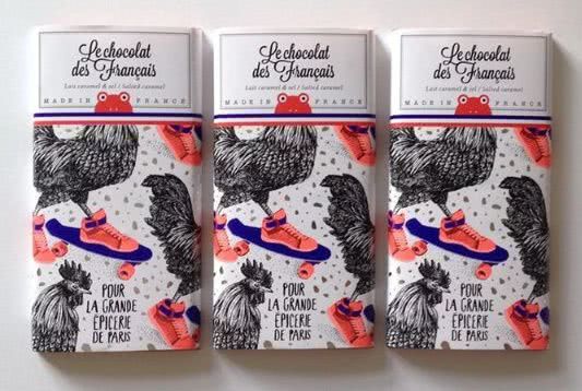 Петух-скейтбордист, конечно, кажется абсурдной идеей, но превращается в хорошо выполненный и повторяющийся мотив. Дизайн упаковки Broll и Prascida имеет яркие красные, синие и розовые акценты, которые появляются на черно-белой иллюстрации.
