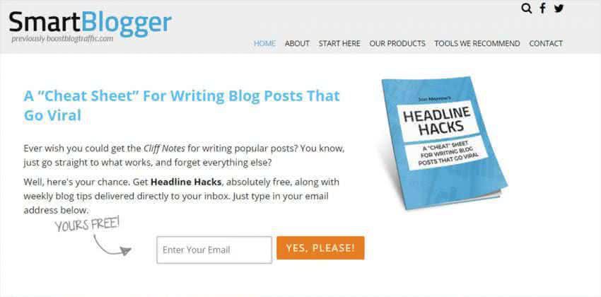 Другим хорошим примером для изучения модальных окон Exit Intent является , где предлагается бесплатная электронная книга с хаками. Книга представлена в заголовке как шпаргалка по написанию вирусных постов, что заставляет ее казаться легкой, менее книжной и более руководством.