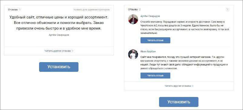 Это было не очень удобно, но не так давно появилось приложение Отзывы, его можно добавить по ссылке vk.com/app6326142 или из каталога vk.com/community_apps .Оно круто тем, что выводит несколько последних отзывов на панель группы в виде виджета, его можно открыть и почитать все, что писали. Есть два вида: с аватарками пользователей и в виде цитат.